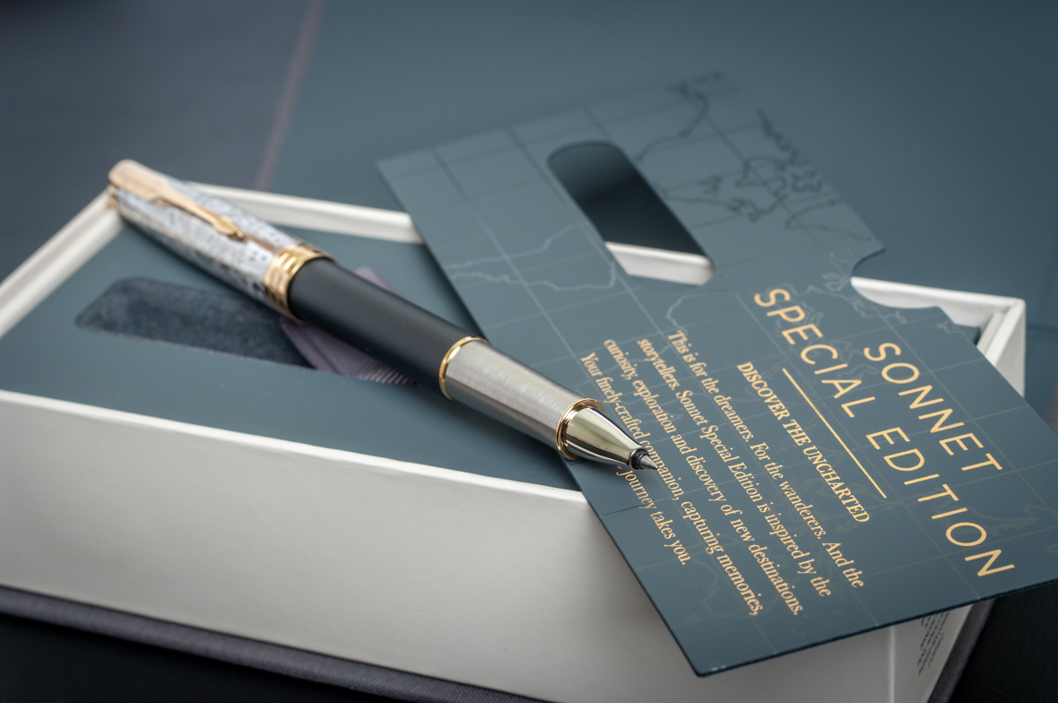 Ручка роллер Parker Sonnet Special Edition 2018 Impression Matte Black GT от официального дилера Parker в Пушкино. Вы можете дополнительно заказать гравировку, которая подчеркнет Вашу оригинальность и придаст памятность статусному подарку. Все ручки Паркер поставляются в фирменном футляре.