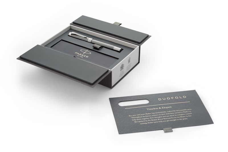Ручка роллер Parker Duofold Prestige Ruthenium Chiselled CT от официального дилера Parker в Пушкино. Вы можете дополнительно заказать гравировку, которая подчеркнет Вашу оригинальность и придаст памятность статусному подарку. Все ручки Паркер поставляются в фирменном футляре.