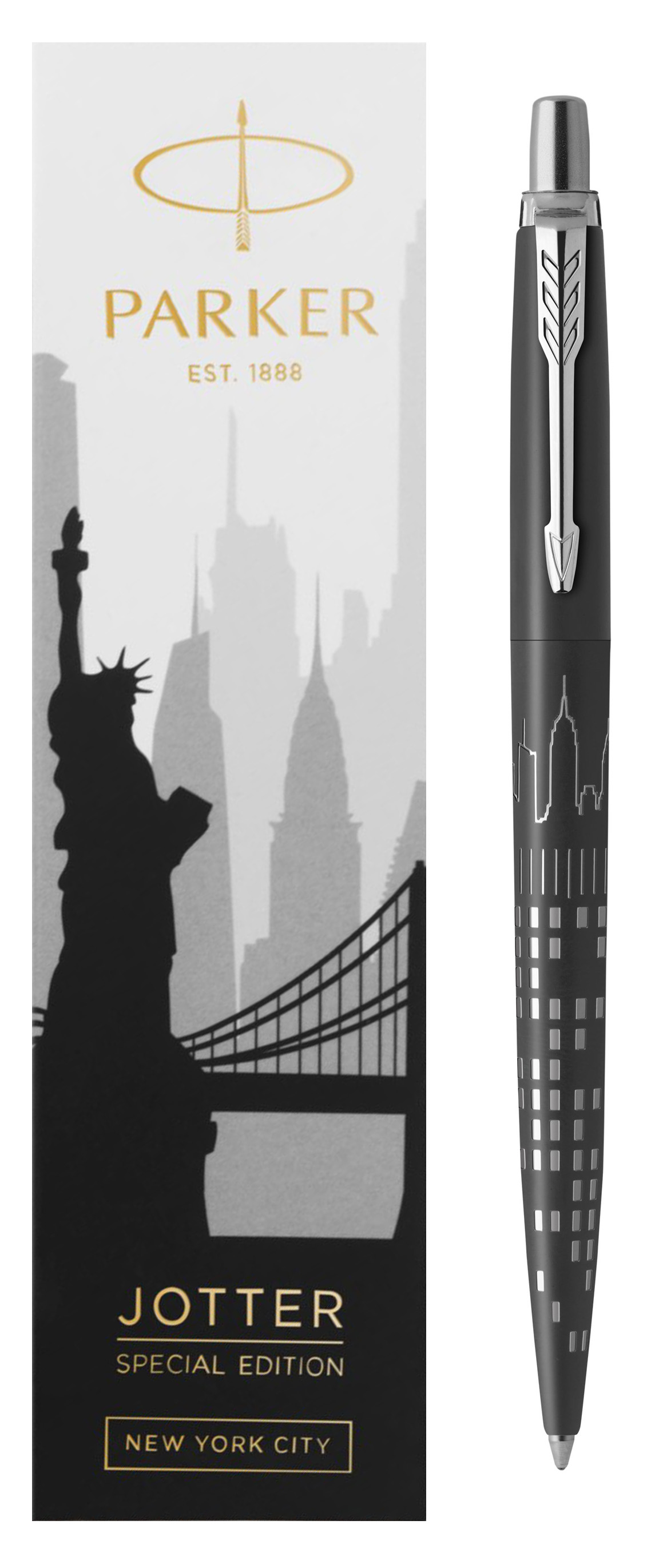 Ручка шариковая Parker Jotter New York Black CT от официального дилера Parker в Пушкино. Вы можете дополнительно заказать гравировку, которая подчеркнет Вашу оригинальность и придаст памятность статусному подарку. Все ручки Паркер поставляются в фирменном футляре.