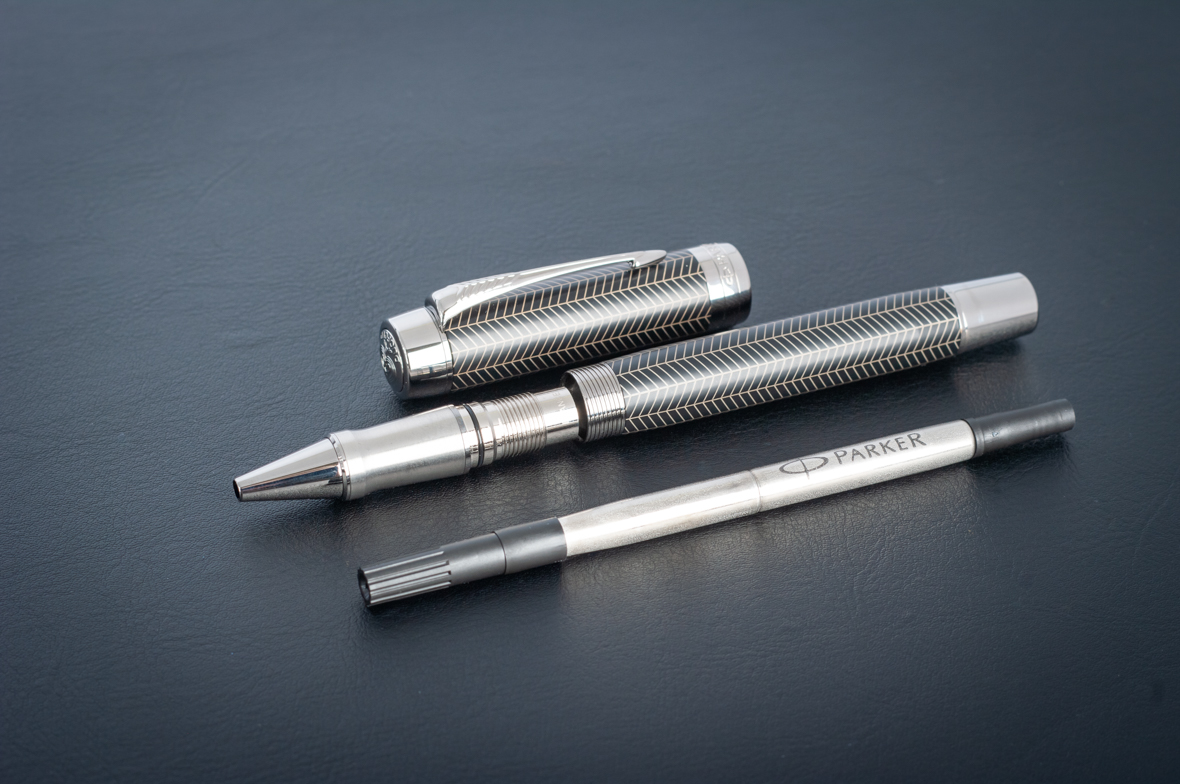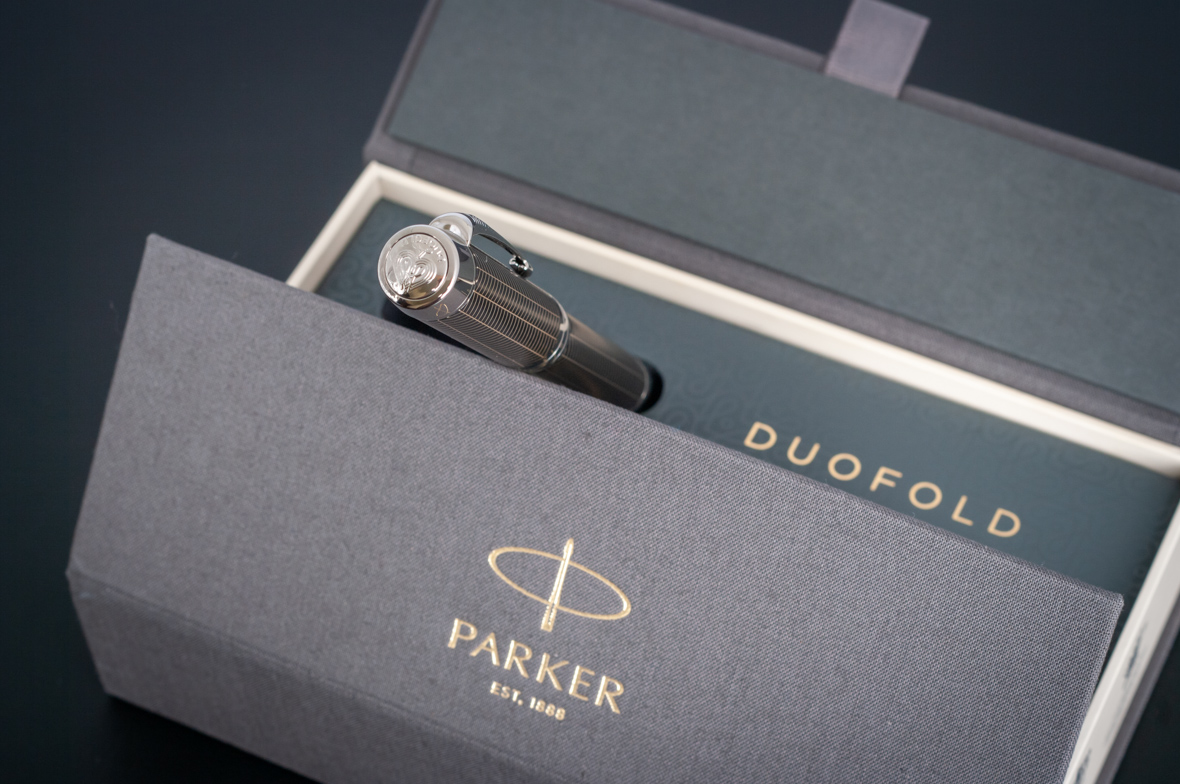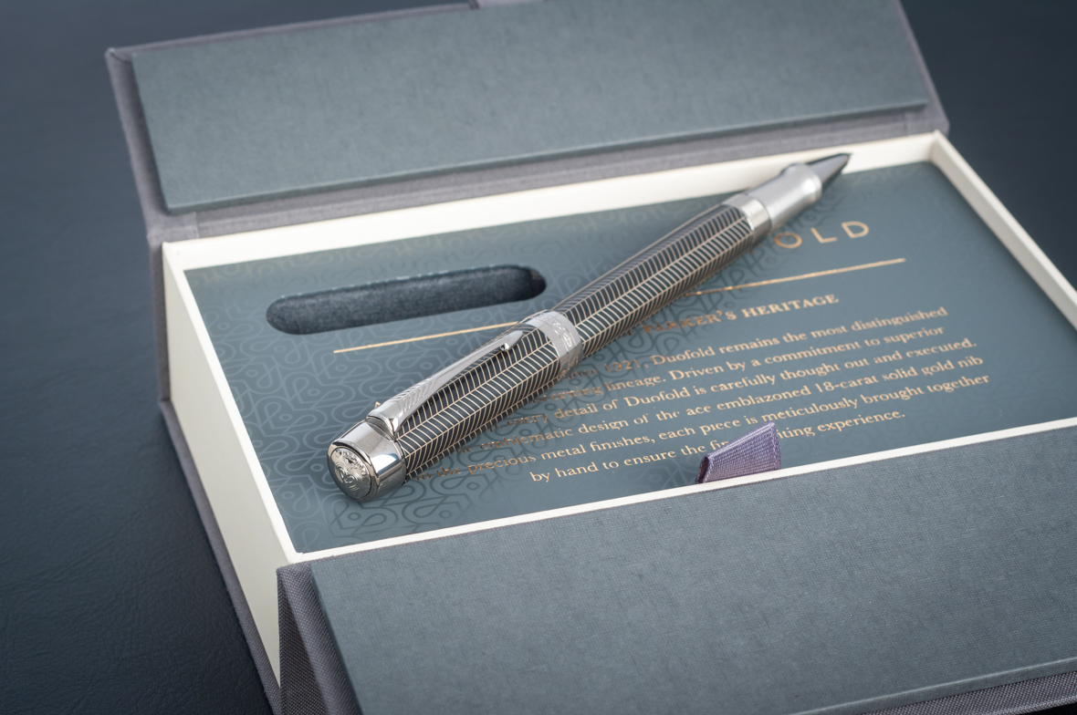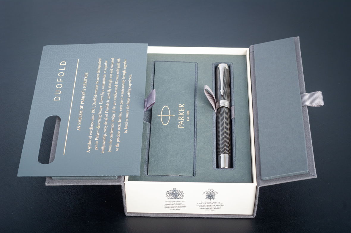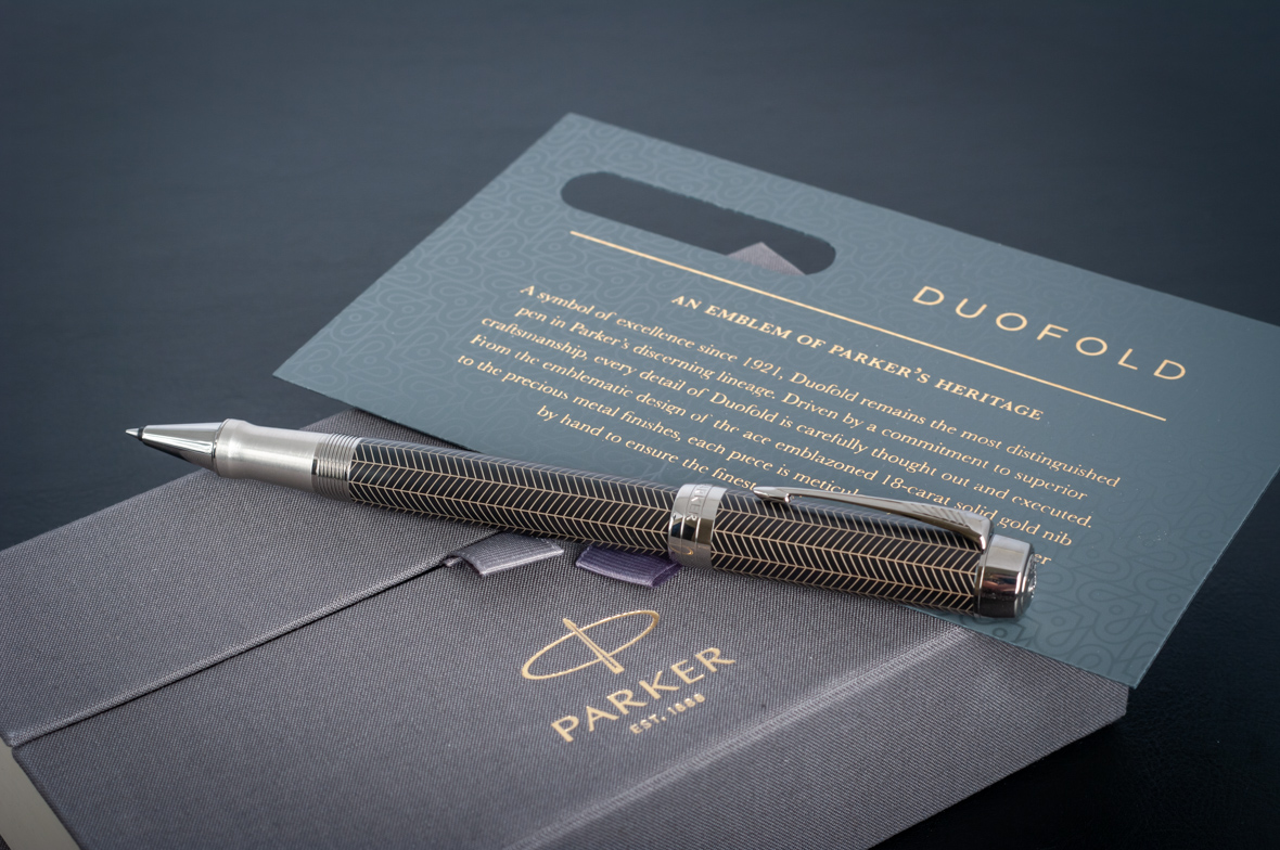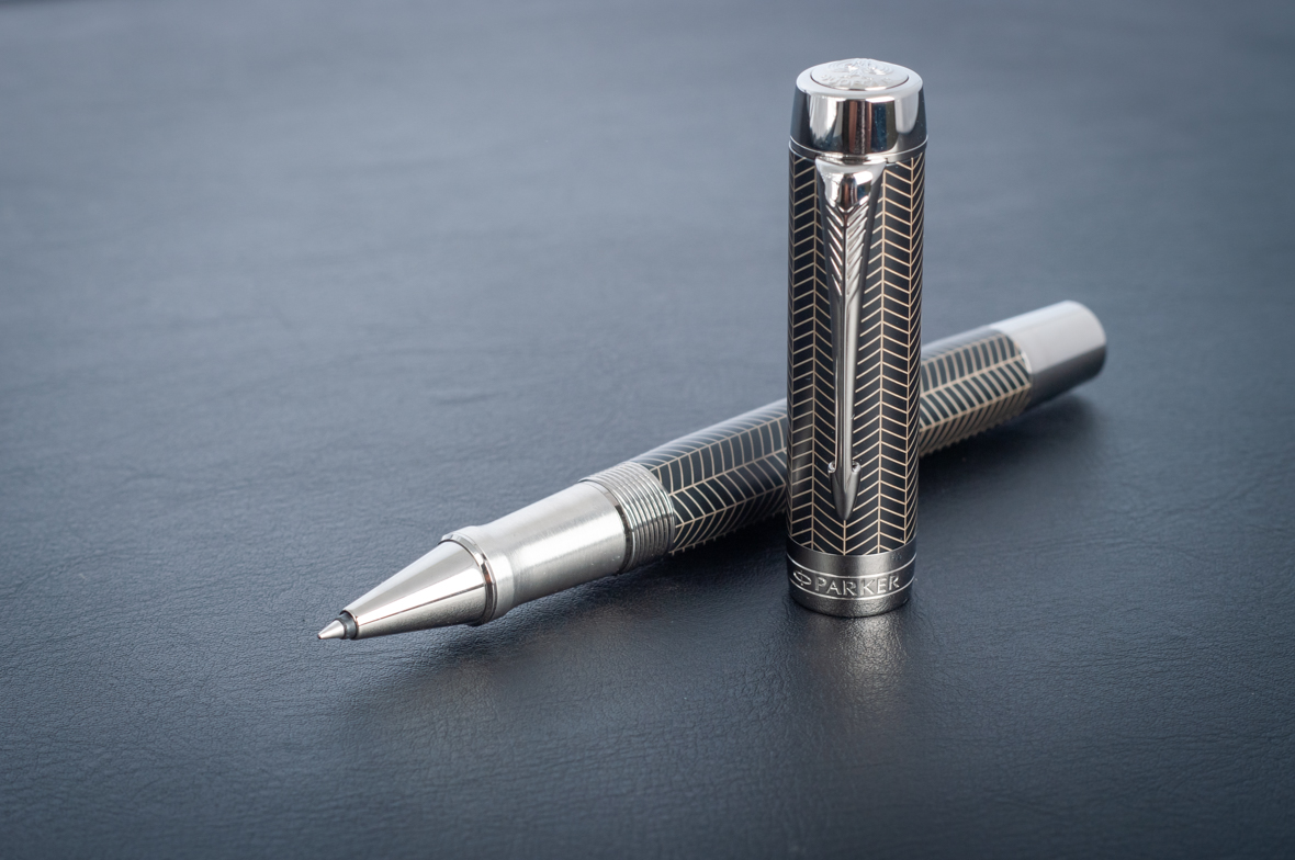 Ручка роллер Parker Duofold Prestige Centennial Black Chevron CT от официального дилера Parker в Пушкино. Вы можете дополнительно заказать гравировку, которая подчеркнет Вашу оригинальность и придаст памятность статусному подарку. Все ручки Паркер поставляются в фирменном футляре.